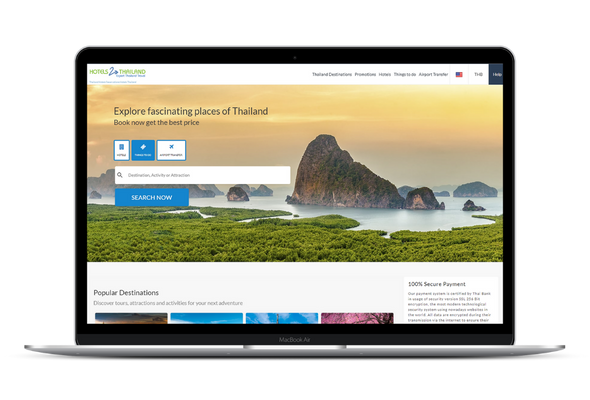 Hotels2thailand.com เป็นแพลตฟอร์มตัวแทนการท่องเที่ยวออนไลน์ (OTA) ให้บริการในการวางแผนและการจองโรงแรมและสถานที่ท่องเที่ยวต่างๆ ในเมืองไทย